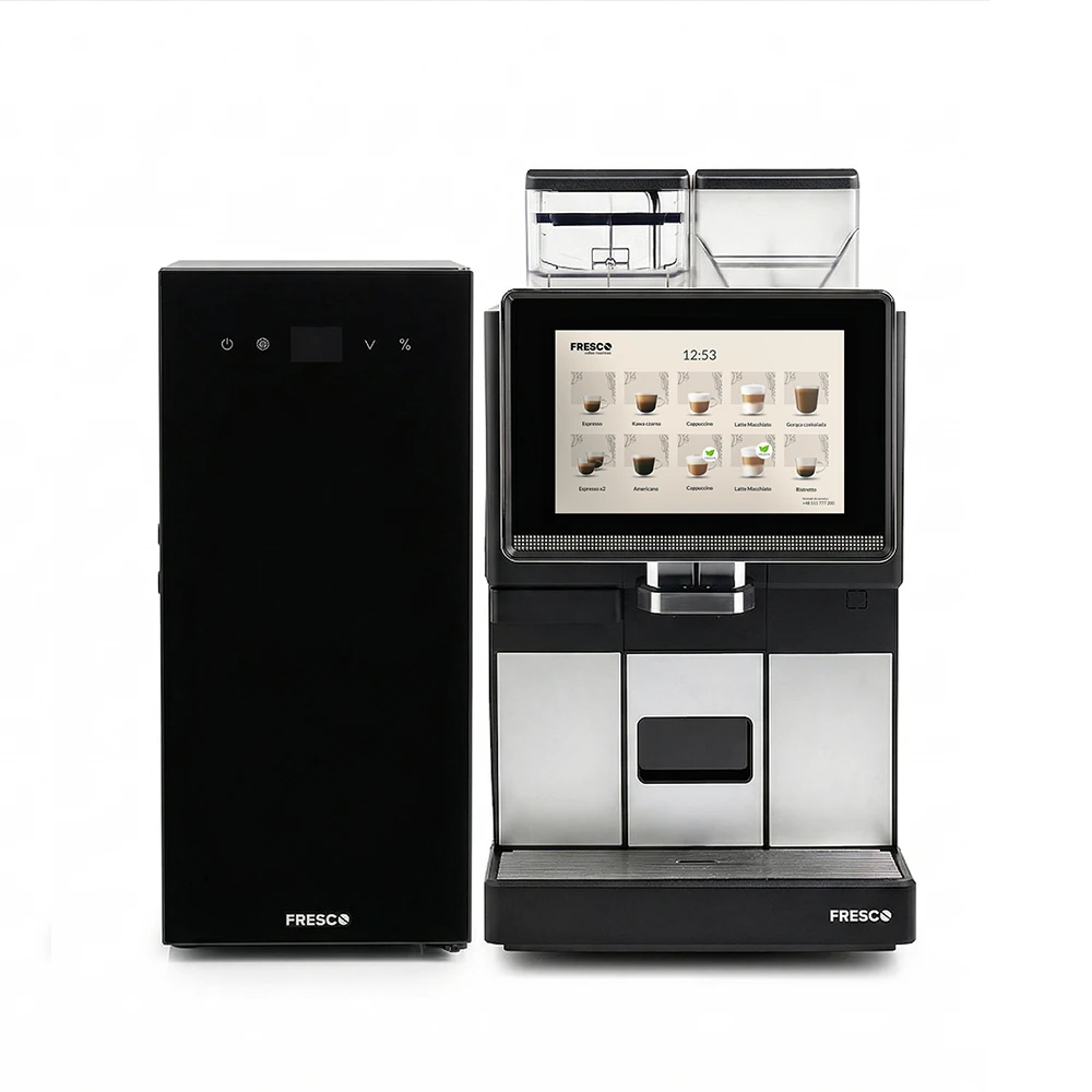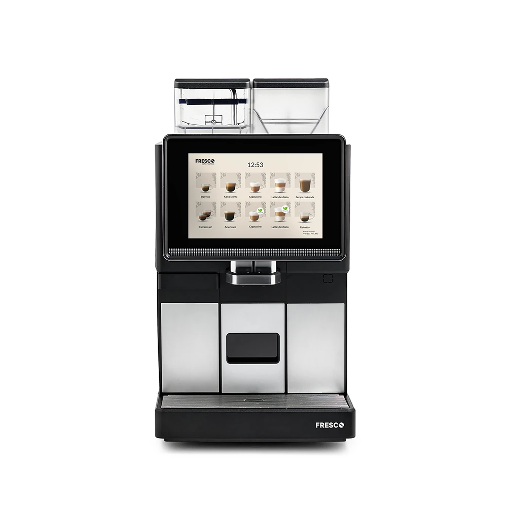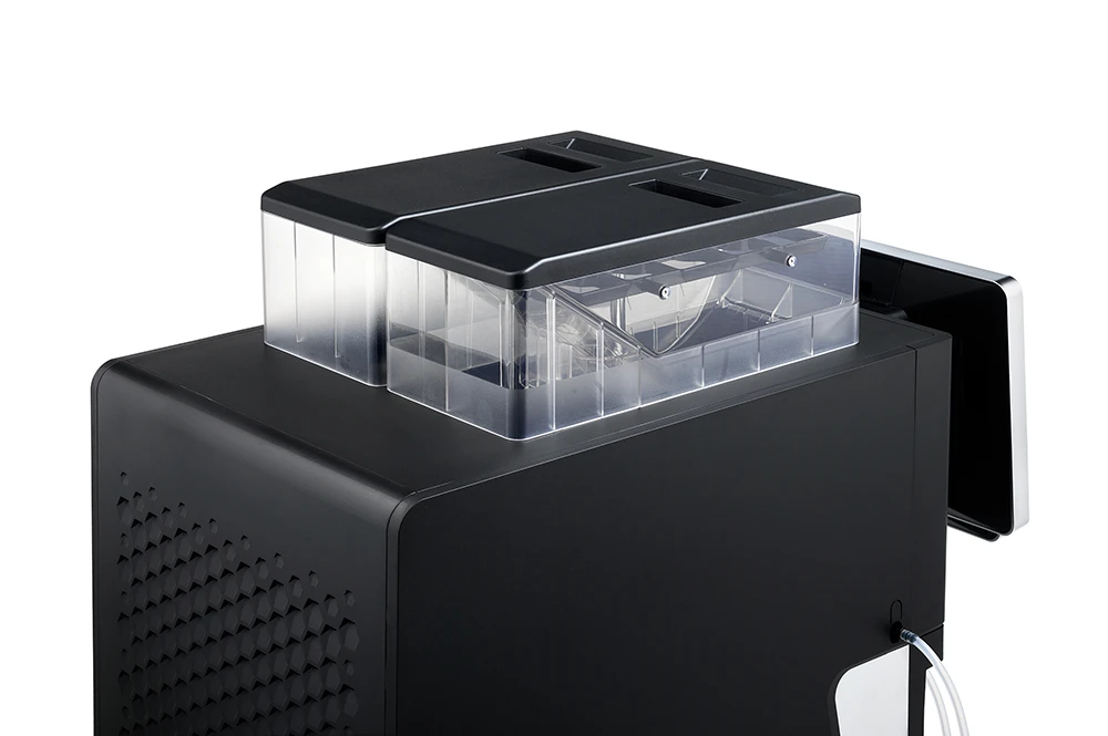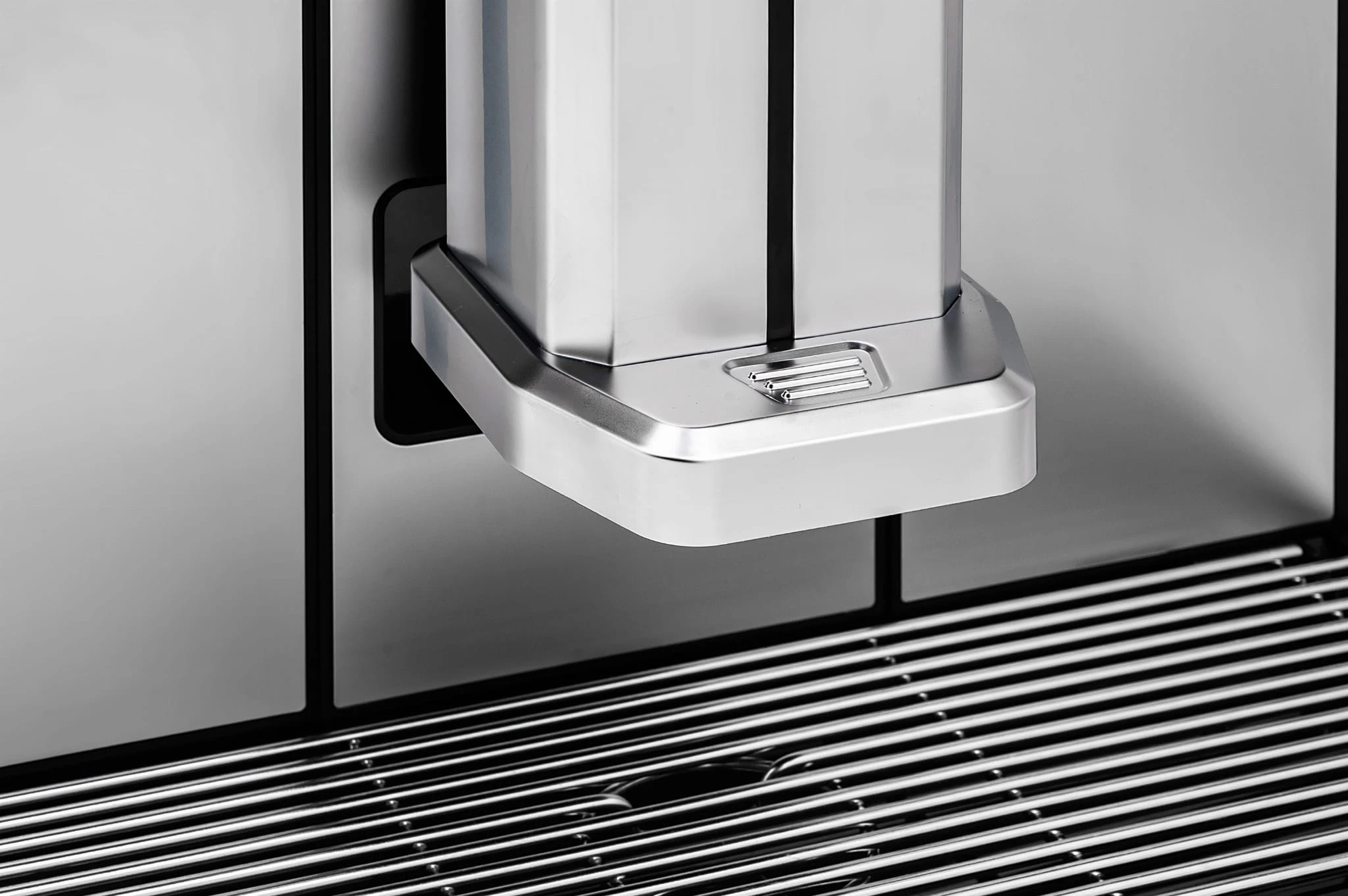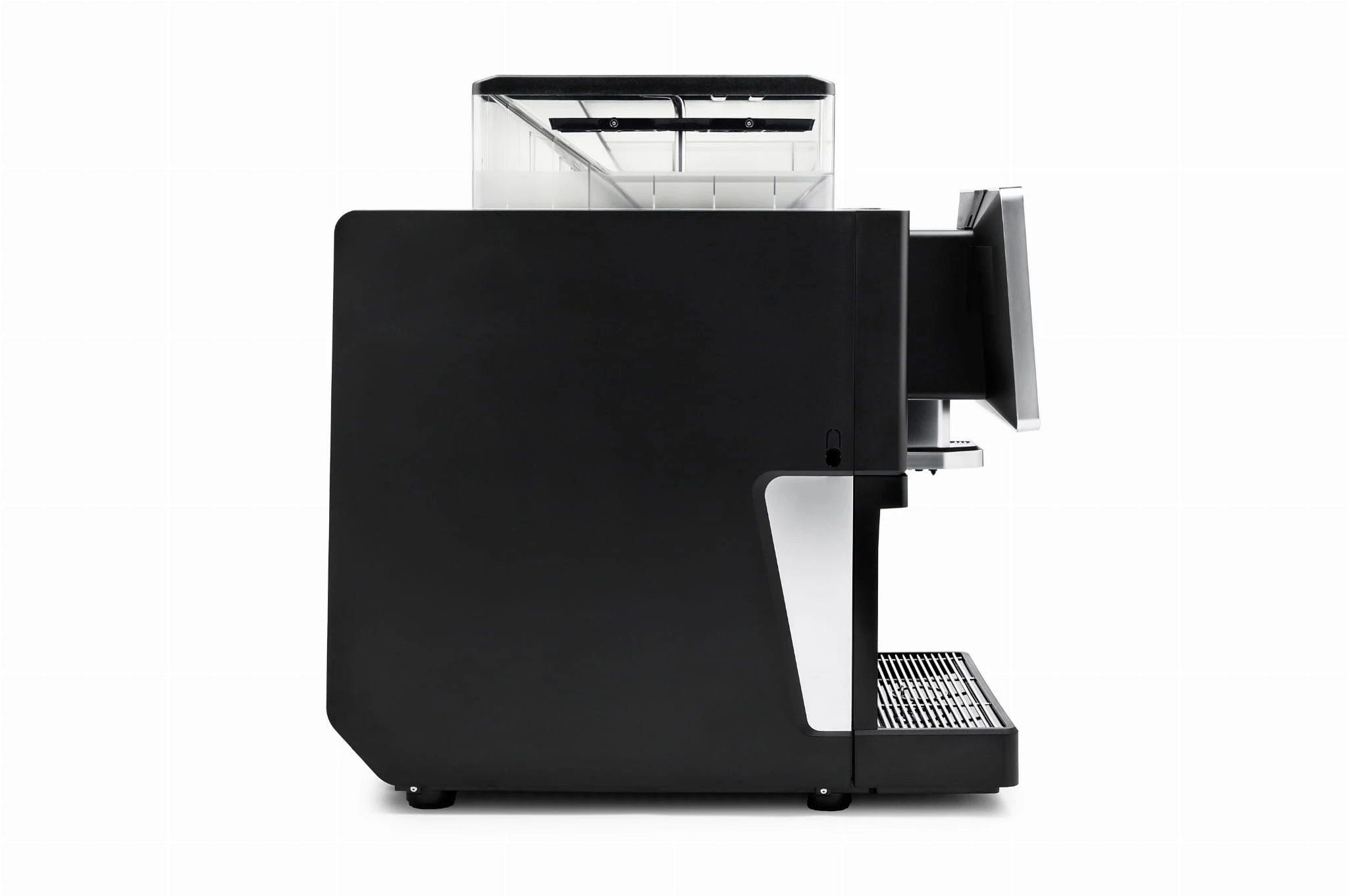 X260 to potężny ekspres stworzony dla dużych biur i hoteli, oferujący stabilną wydajność 150 filiżanek dziennie. Jego centrum to 10,1-calowy ekran dotykowy, który sprawia, że obsługa jest błyskawiczna i intuicyjna. Metaliczna konstrukcja skrywa dwa bojlery oraz inteligentny system mielenia, gwarantujące powtarzalną, najwyższą jakość smaku.