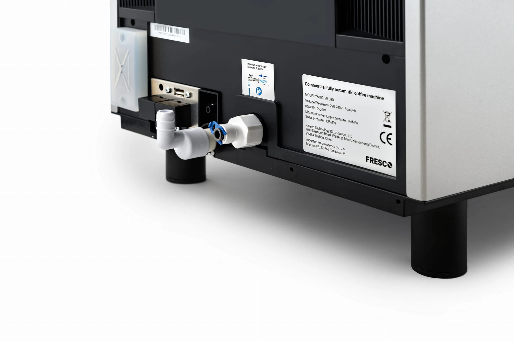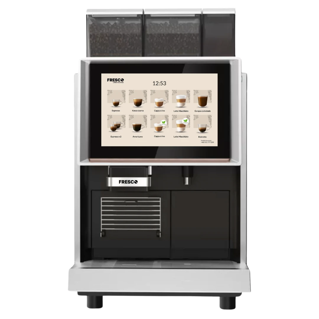 Ekspres do kawy Fresco X880 to najnowszy i najbardziej zaawansowany technologicznie model z ekspresów automatycznych. Został dostosowany do nawet najbardziej wymagających potrzeb klientów, jego dzienna wydajność to ok. 500 kaw. Urządzenie zostało zaprojektowane z myślą o dużych przestrzeniach biurowych, punktach gastronomicznych, hotelach, restauracjach i stacjach benzynowych. Fresco X880 zapewnia najlepszej jakości napoje za jednym kliknięciem oraz doskonałe wrażenia z korzystania.