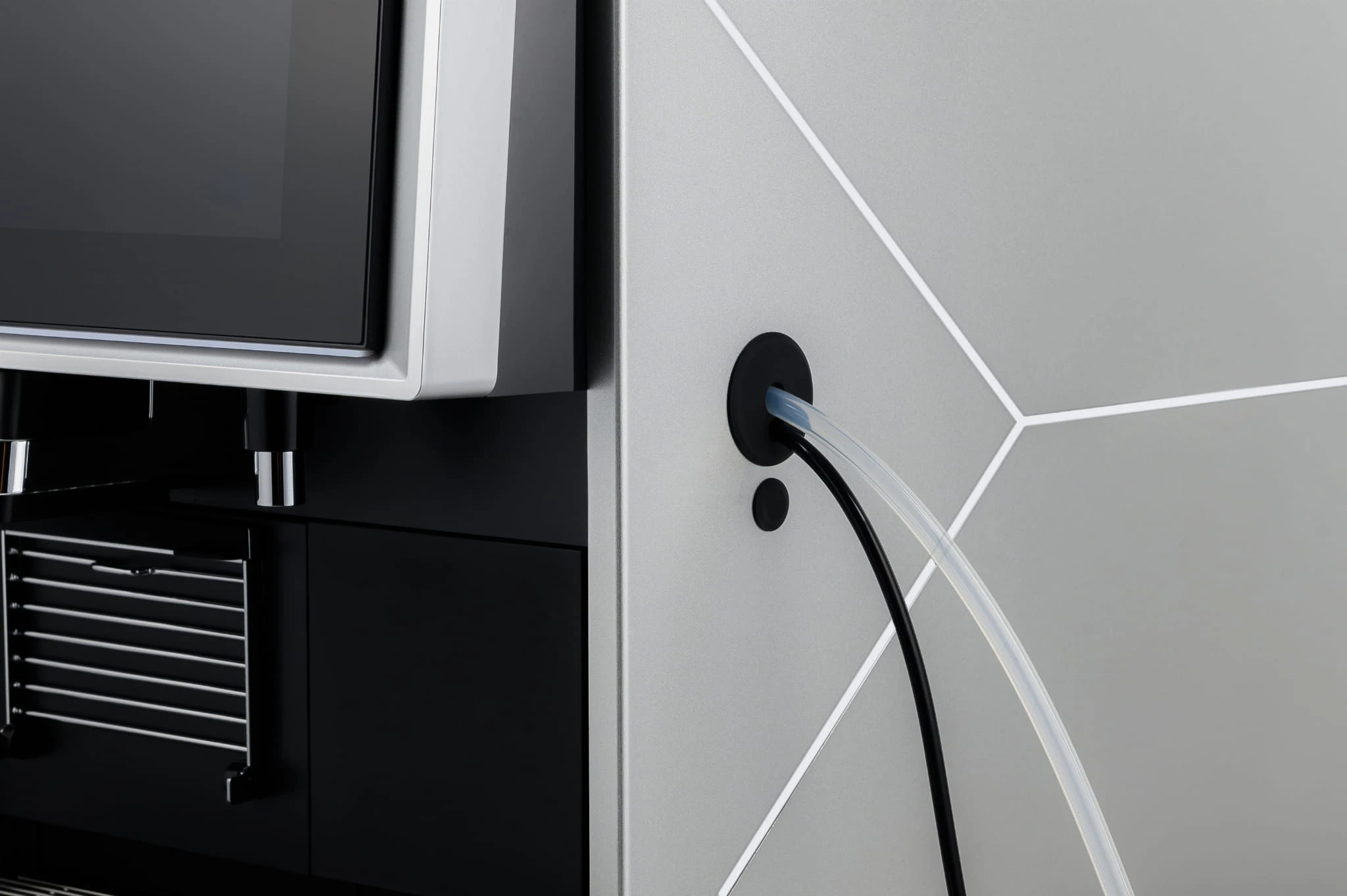 Ekspres Fresco X880 jest wyposażony w pompę mleka, która pozwala na zainstalowanie lodówki np. w szafce pod blatem, na którym stoi ekspres. W ten sposób możesz cieszyć się pełnią funkcjonalności kiedy nie masz miejsca na lodówkę obok ekspresu lub chcesz schować ją poza widok gości.