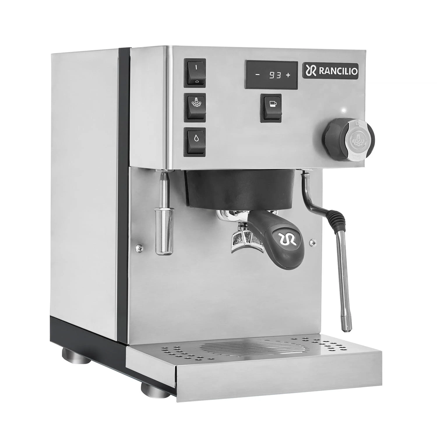 Rancilio Silvia Pro wyposażono w cyfrowy wyświetlacz, który prezentuje poziom temperatury, licznik parzenia kawy, informuje o niskim poziomie wody w zbiorniku i umożliwia zaplanowanie włączenia ekspresu o określonej godzinie (funkcja budzenia).