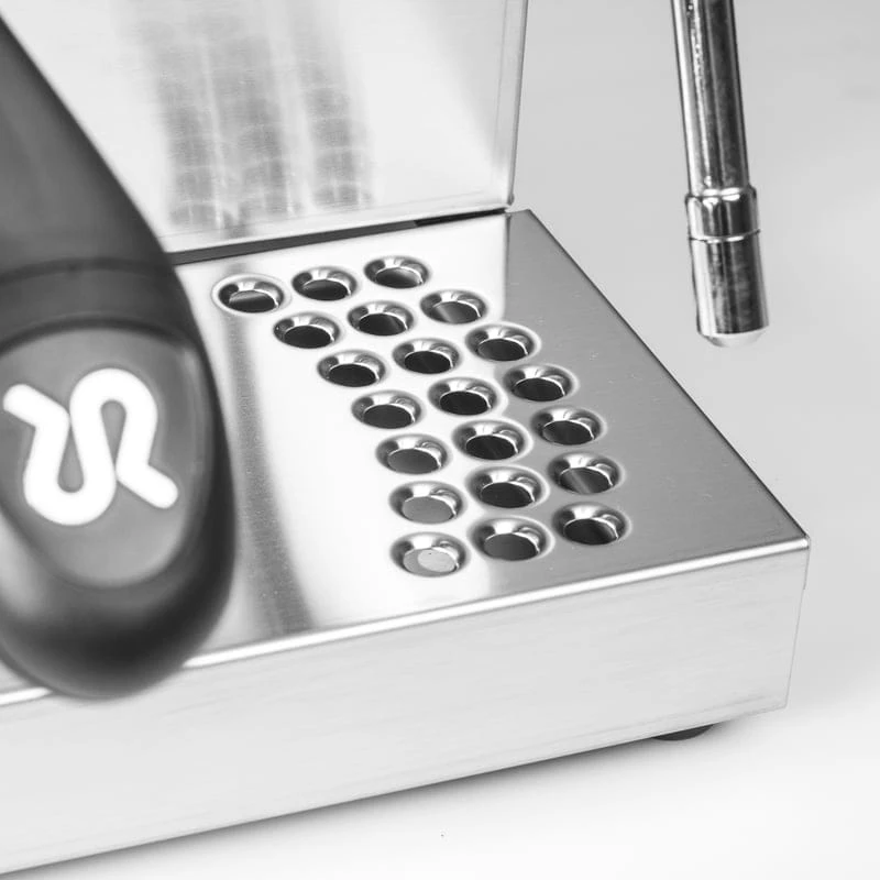 Rancilio Silvia E wyróżnia się prostą obsługą. Jednym przyciskiem można przygotować doskonałe espresso, a drugim przerwać proces zaparzania.